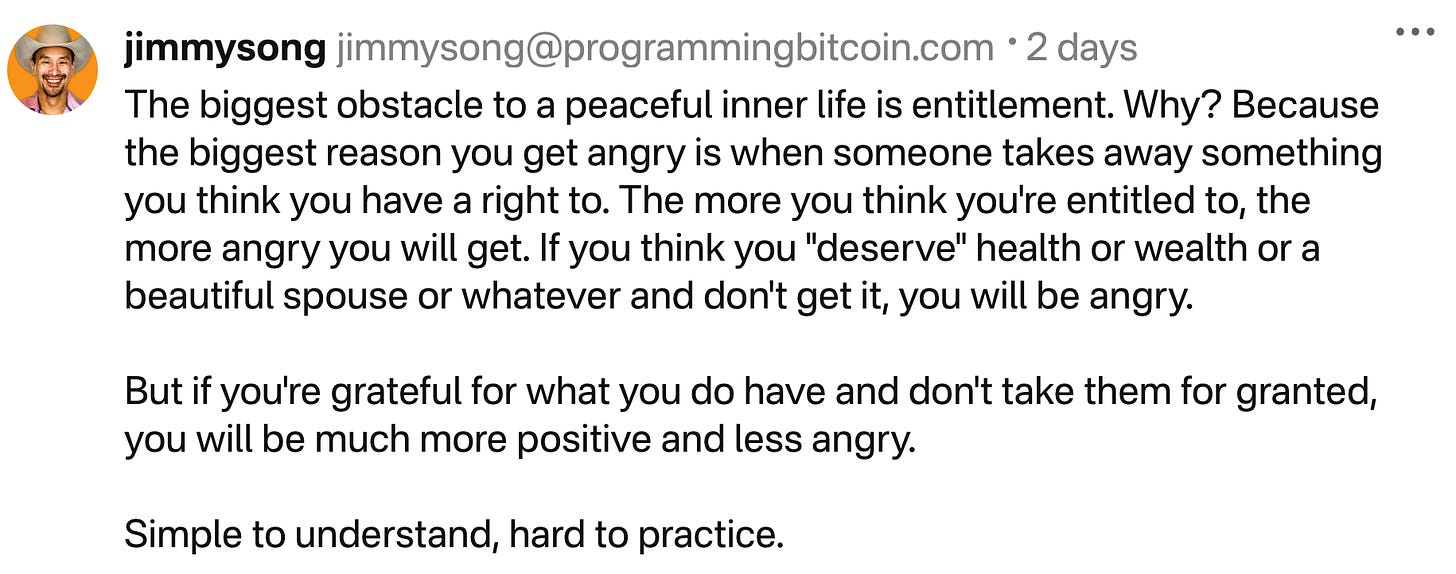- has this thought-provoking essay about the reality of getting fiction published, distributed and read in a decentralized way. As he points out, centralization is at multiple levels, like gatekeeping, ideology, and privacy. But the most practical aspect is the discovery and distribution, which centralized platforms excel at, and decentralized platforms don’t really do well. As he points out, a permissive centralized platform like Substack is in that way more preferable than a decentralized one like Nostr simply because of the benefits like the minimization of friction. This is worth considering as we head toward a post-fiat subsidized world.