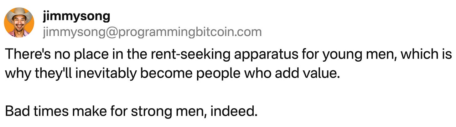 Derisking Leads to Overfitting - Erik Hoel writes about overfitting, specifically as how it shows up in culture. This is the phenomenon where we see logos, cars, movies, even people looking more and more similar as the variety reduces. As with the phenomenon of model collapse, the copy of a copy of a copy ends up pretty bland and meaningless. What’s unsaid is that the overfitting phenomenon is a fiat money phenomenon where everything is de-risked as much as possible. When everything is funded through loans, every project requires approval from some bureaucrat, which act like AI filters. Is it any wonder that the results are bland and boring?