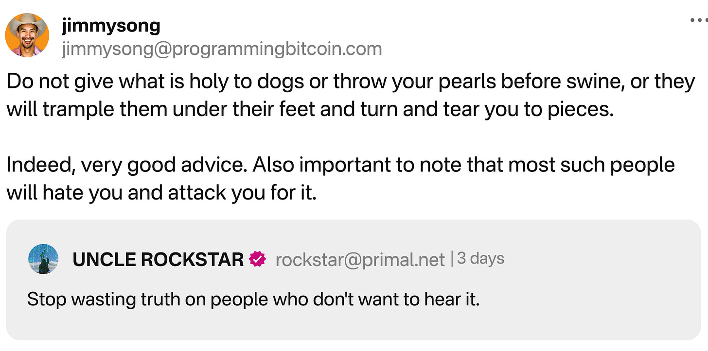 Conversation with Max - This was why I was at the Max and Stacy Invitational. Fast forward to 1:55:00 to get to the talk I did with Max Keiser. We talked about treasury companies and whether it’s good for Bitcoiners, how David Bailey is doing similar things to Barry Silbert, about what low time preference Bitcoin conferences look like and the charitable industrial complex. There were some discussions of socialism, property rights and the entitlement of downwardly mobile young liberals. It was intended to be about 20 minutes, but we talked for about 45. Hope you enjoy it.