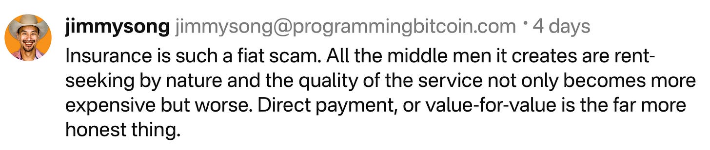 On Agency - Johann Kurtz writes about how our elite, particularly those that are on the left, are pretty low agency. The irony is that many elites are pretty obsessed with that word, yet as Johann points out, they very rarely try to solve any problems not in their specific domain. In other words, they tend to “stay in their lane.” This speaks to a cowardice that I’ve observed in fiat-captured people. It’s an ingrained instinct from years of playing within a system that it’s unthinkable to even try to change a small part of the system. The two exceptions he shows are Elon and Trump, who for all their bluster, are not shy about trying things. Fiat money has this effect of serving the system rather than changing it.